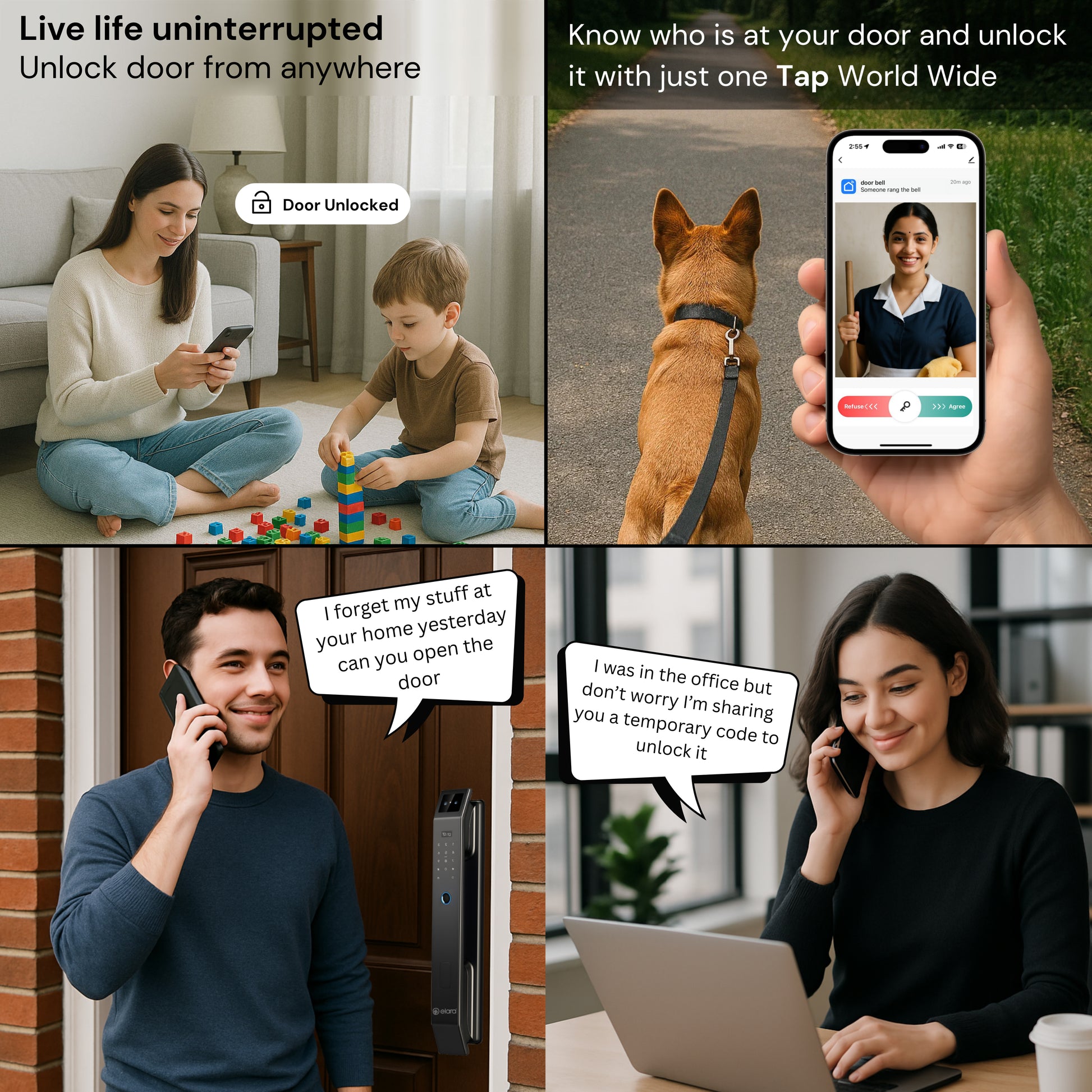 Elara Apex Lite Smart Door Lock, HD Display, Camera, Fingerprint, RFID Card Scanner, Pin Unlock, One Touch Lock, LED Light, Alarm Alert, Bluetooth & WiFi, Black,