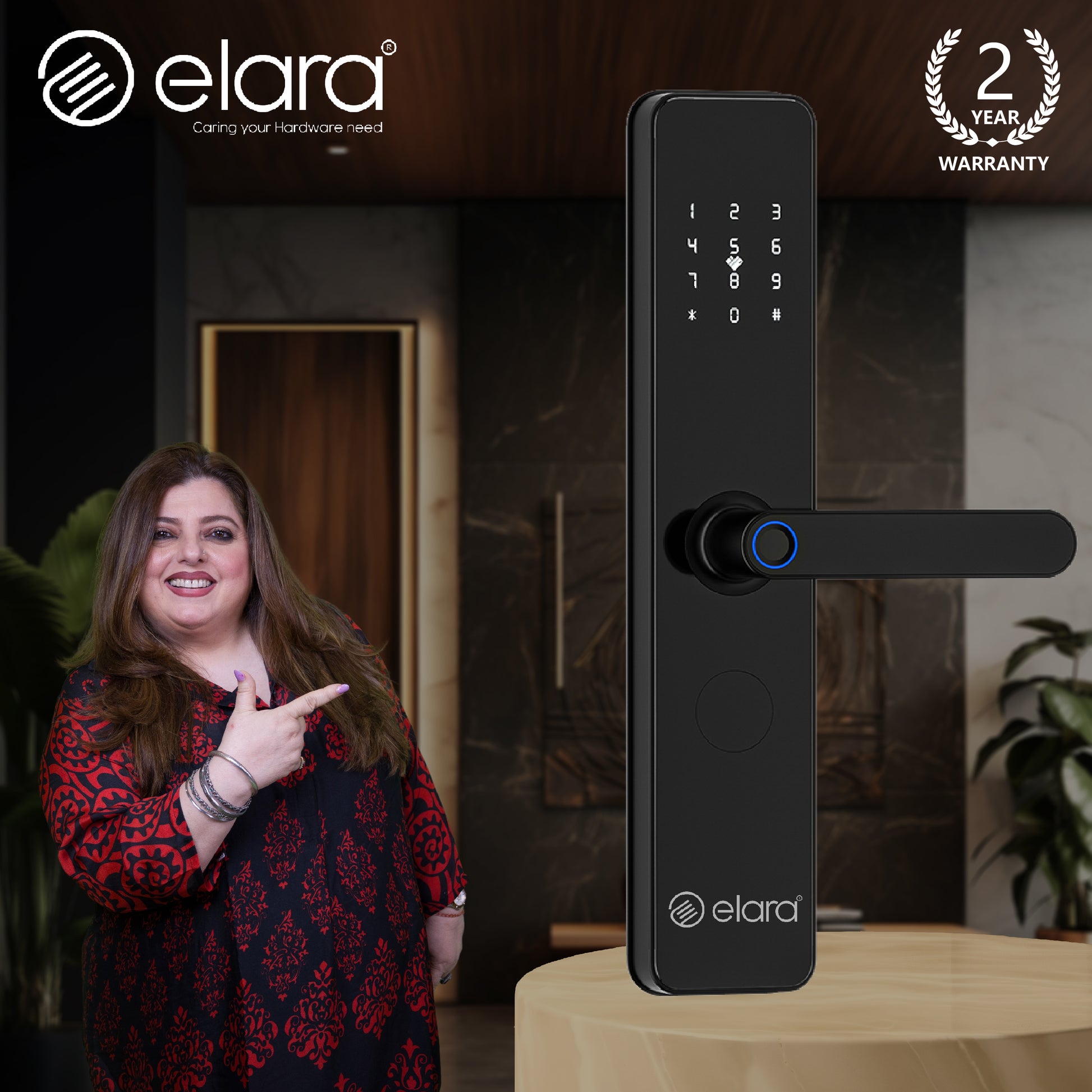Elevate your home security with the Elara smart lock - a cutting-edge solution that combines convenience and uncompromising safety. This sleek device offers a multitude of unlocking options, including fingerprint recognition, card access, app and OTP control, traditional keys, and PIN entry. Stay connected with Bluetooth and WiFi capabilities that enable remote access and monitoring. With an alarm alert system, you can rest assured that your home is safeguarded against unwanted intrusions. Crafted with meticulous attention to detail, the Elara smart lock seamlessly blends modern technology with a sophisticated design, elevating the aesthetics of your entryway. Experience the future of home security today with this innovative, user-friendly smart lock from Elara.