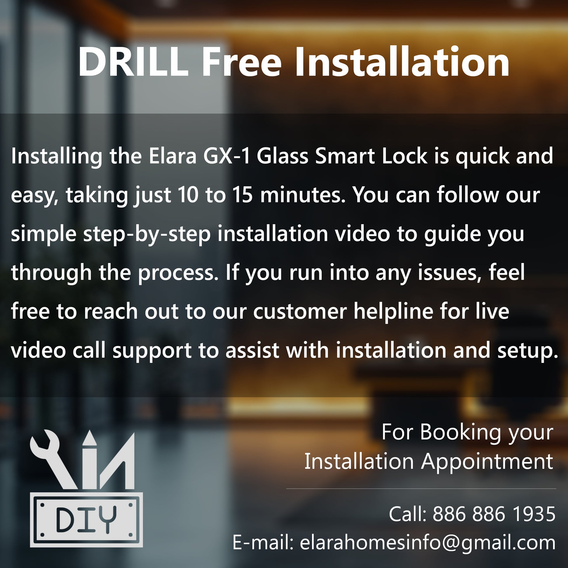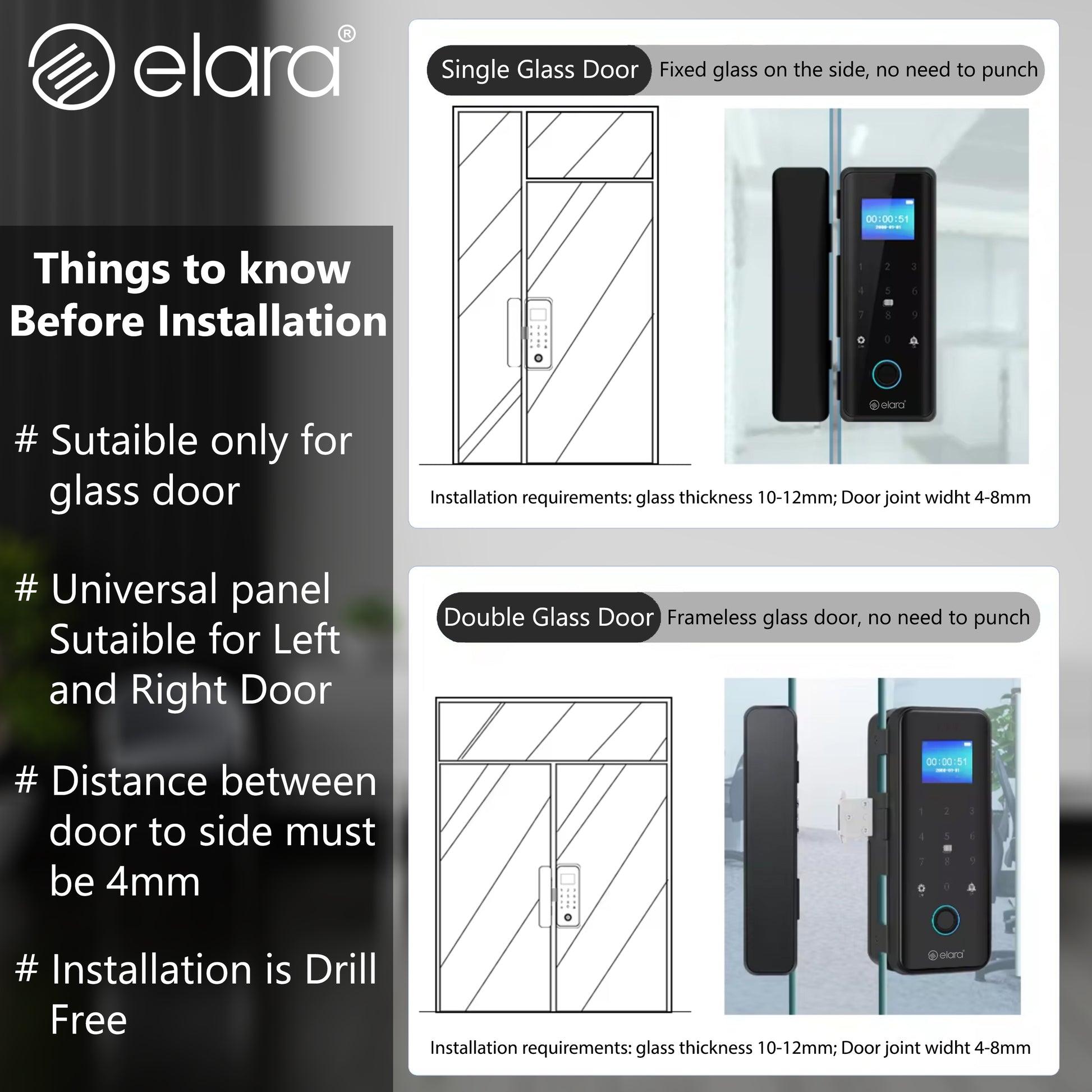 Elara GX-1 Smart Glass Door Lock, Fingerprint, Mobile App, PIN, RFID Card, 10-12 mm Glass Doors