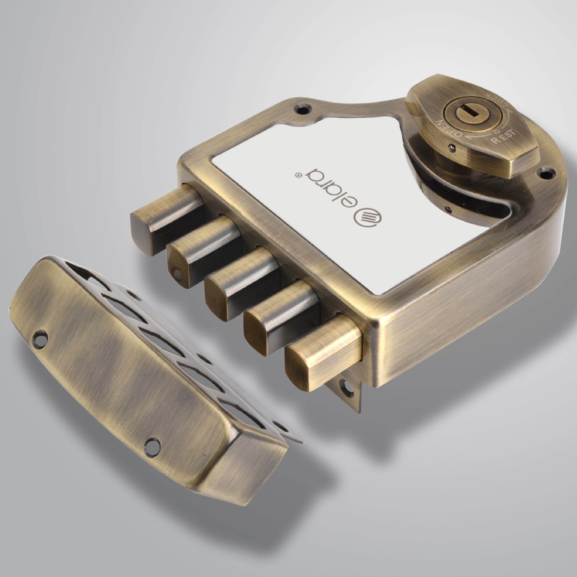 Elara Quinbolt 2CK Deadbolt for Main Door, Suitable for Right and Left Handed Doors, Inside Opening Wooden Door Lock with 4 Reversible Brass Keys (Anitique, EDL-04, Quinbolt, Ultra Key)