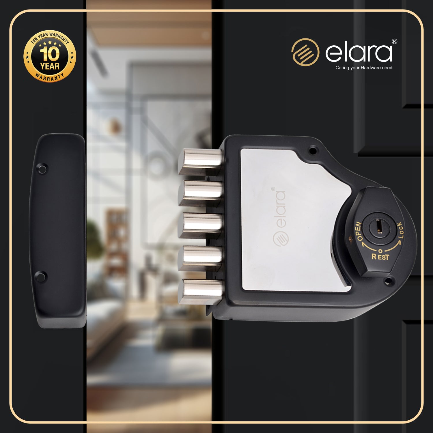 Elevate the security of your home or office with the Quinbolt BSK from Elara, a top-quality lock crafted in India. This robust lock boasts a 20mm thick bolt that provides exceptional strength and resistance against prying. Its double-action knob ensures smooth operation, while the 29mm brass cylinder offers a vast 100000+ key combinations for unparalleled security. With four brass ultra keys included, you can rest assured that only authorised individuals gain access. Backed by a 10-year warranty, this lock guarantees long-lasting performance and peace of mind. Upgrade your security today with this meticulously crafted Indian masterpiece.